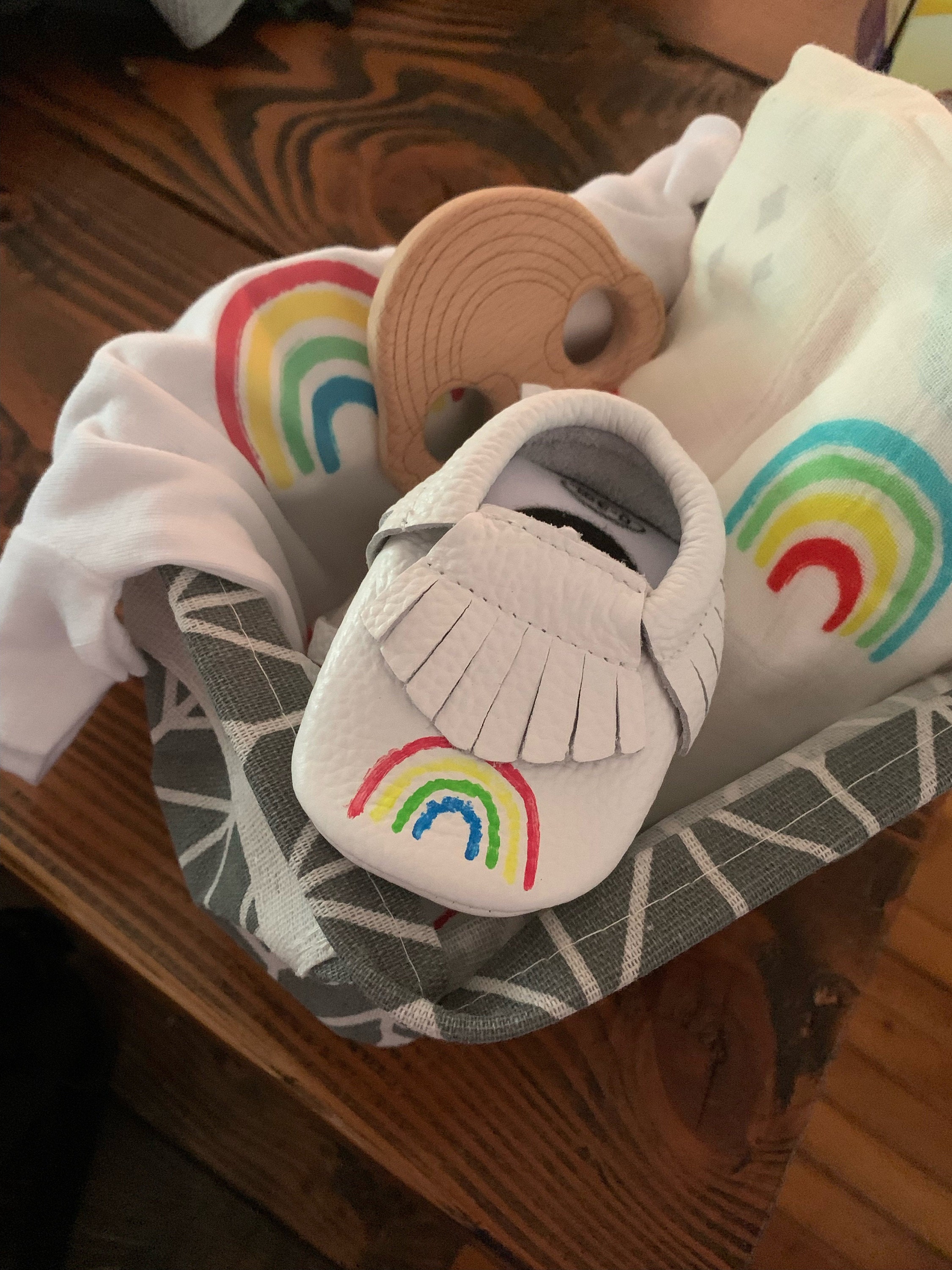 Adorable gift for a coworker - especially following a miscarriage. We wanted to acknowledge the difficult path he and his wife had been on without calling it out....and this "Rainbow Baby" basket was perfect!